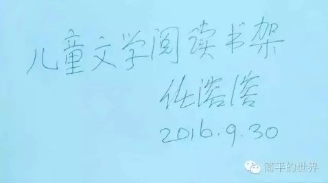 94歲的任溶溶和93歲的孫毅,這兩位德高望重的兒童文學(xué)作家首先支持了我。任老先生親自題寫了“兒童文學(xué)閱讀書架”八個充滿力量的大字,而且捐贈了一箱子他的名著和譯作。他讓隨時在身邊照顧他的兒子去郵局寄書,但我生怕發(fā)生意外,說定上門去取,而著名節(jié)目主持人曹可凡又怕我拿不動,親自陪我前去,并抱著一大箱書把我送到車上。孫老先生的腿腳不便長時間站立,但他卻窩在地下室里精心地整理所捐贈的著作。讓我特別感動的是,上海文達學(xué)校校長黃曉峰在該校開展了“手牽手,為東回鎮(zhèn)中心小學(xué)小朋友捐書”活動,孩子幫孩子,那股熱情就像沸騰的水,短短時間就募集到658冊兒童文學(xué)書籍。有著我眾多同學(xué)、鄰居、書友的“期待旅行”微信群,一天功夫便為我籌集了一萬多元錢,希望能制作牢靠的書架,并為學(xué)校的近500位孩子再送些學(xué)習(xí)用品。