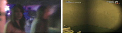 除了《視線之外》,還有很多作品的角色表現需要在這方面做特殊的處理。譬如游戲《合金裝備:食蛇者》的一段過場動畫里,玩家所操縱的角色“裸蛇”斯內克昏厥后被綁在行刑室拷問。斯內克在睜開眼睛之前就已經醒來,但被蒙著黑色頭套。過場動畫所使用的表現方法非常直接有效:一大段黑場,觀眾只聞聲音,不見畫面。同一場戲中,在救女主角夏娃免于一死時,斯內克被子彈打瞎了右眼。此后玩家的游戲過程中若使用第一人稱視角,屏幕右半邊都帶有黑色的虛邊。對于《食蛇者》這種可以隨時切換第三人稱與第一人稱視角的游戲作品來說,黑色虛邊所起到的認同作用尤其顯著。