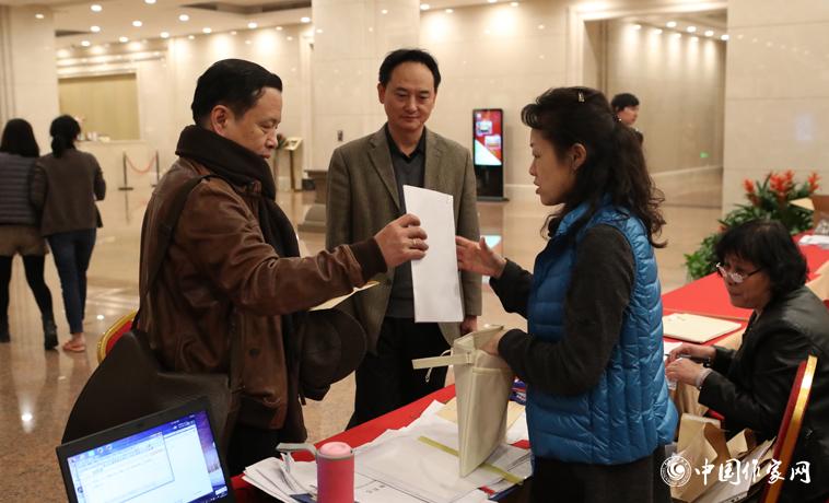 11月27日,中國作協第九次全國代表大會與會代表吉狄馬加報到。