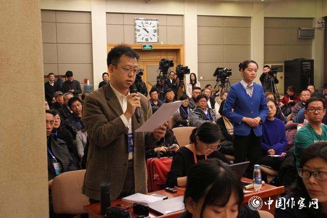 11月28日,中國作家協(xié)會(huì)第九次全國代表大會(huì)新聞發(fā)布會(huì)上,中國作協(xié)副主席何建明答記者問。