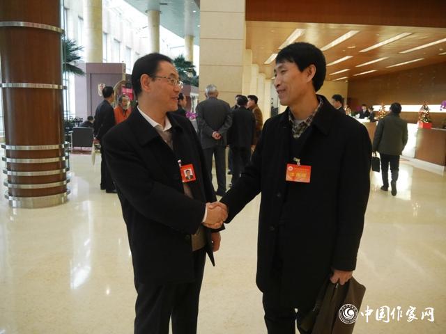 握手11月29日,中國作協第九次全國代表大會與會代表親切交流。
