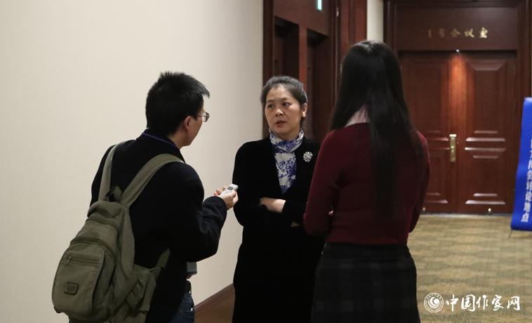 12月1日,黑龍江、四川代表團(tuán)分組學(xué)習(xí)討論,遲子建代表接受媒體采訪。