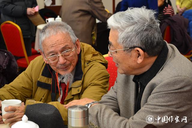 茶話會上,中國作協黨組書記處同志來到老作家、老同志中間,和新老朋友一一握手,暢敘情誼,共談文學,他們所到之處,不時傳來陣陣歡聲笑語。有的老作家拉著鐵凝、錢小芊談文學、說友情,也給中國作協新一年工作提出自己的建議;有的則拿出自己剛出版的作品,贈送給現場的親朋好友;還有的三五好友相聚,紛紛取出手機拍照,記錄下這美好難忘的一刻……