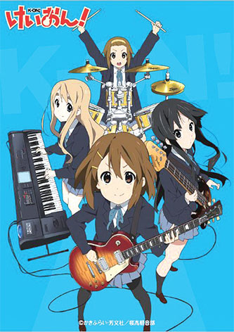 《輕音少女》最初就是一部由漫畫(huà)家kakifly創(chuàng)作的四格漫畫(huà)。該作品2007年5月開(kāi)始連載于四格漫畫(huà)月刊《Manga Time Kirara》,2010年10月完結(jié)。2008年10月,《輕音少女》同時(shí)在雜志《Manga Time Kirara Carat》上隔月連載。作品的單行本于2007年4月26日開(kāi)始發(fā)行,共計(jì)4卷。2009年1月,京都電視臺(tái)著手制作同名動(dòng)畫(huà)作品,4月2日開(kāi)始在TBS系的電視臺(tái)播出。在原畫(huà)的基礎(chǔ)上,導(dǎo)演山田尚子及編劇吉田玲子在動(dòng)畫(huà)作品中加入了諸多原創(chuàng)角色,用以豐富形象,完善情節(jié)。另外,漫畫(huà)原作由于形式所限,雖然人物形象鮮明,對(duì)話(huà)有力,但是背景過(guò)于蒼白;動(dòng)畫(huà)版的創(chuàng)作者們?yōu)閺浹a(bǔ)這一缺陷,將故事的發(fā)生地定為京都,根據(jù)現(xiàn)實(shí)生活中的景象,對(duì)動(dòng)畫(huà)中的旅行地、上學(xué)路、快餐店、地鐵站甚至學(xué)校做了實(shí)景化修改。動(dòng)畫(huà)作品一經(jīng)播出,主人公就讀學(xué)校的原型——滋賀縣犬上郡豐鄉(xiāng)町的町立豐鄉(xiāng)小學(xué),立刻吸引了大量《輕音少女》的粉絲前來(lái)“朝拜”。