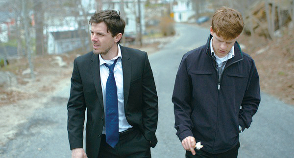 影片中的曼徹斯特并非英國的大型工業(yè)城市,而是美國東海岸一個人口只有5000的小鎮(zhèn)。多年前,男主人公李半夜嗑了藥,神志不清中忘記蓋上壁爐的防火板便出門了。回來之后,他眼看著自己原本平靜幸福的家和三個睡夢中的孩子被湮沒在一片火光之中……于是妻離子散,遠走他鄉(xiāng)。直到李的哥哥喬伊病逝,李回到小鎮(zhèn)為其打理后事,意外得知哥哥生前曾在遺囑中將他指定為自己兒子今后的法定撫養(yǎng)人。要不要回到令他肝腸寸斷的家鄉(xiāng)、要不要再次鼓起勇氣去照顧一個孩子,艱難的選擇再一次擺在了李的面前。