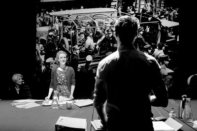 近年,紀錄劇場在中國業內越來越受到關注,克羅辛格也介紹了他的工作方法。排練之前,他先和杜拉一起工作了半年時間,之后用7周跟演員一起工作。這個過程有點像在大學里的討論會,互相提出問題,直到最后,提出越來越精準的問題。“我的演員必須要讀很多文獻,他們要熱衷于閱讀,并且是優秀的演講者。因為當你在劇場里講出一段臺詞時,你還要接下去解釋它。”談到紀錄劇場中的表演,克羅辛格說,“如果演員太去‘演’,那么觀眾就沒事干了。我們要創作出一個個角色的身影,讓觀眾可以自由地去填充上色,自由決定你看到什么,你怎么想,角色身上發生了什么,他/她身處的情境是什么。”克羅辛格要求演員不能過度扮演,應該有所節制。“這有點像極簡主義的表演、電影的表演。因為‘鏡頭’離你很近,所以你的反應都要極簡化,得高度集中注意力。”