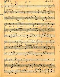 ◆黃自《思鄉》手稿(部分),摘自《黃自先生誕辰110周年珍貴文獻檔案展展覽手冊》
