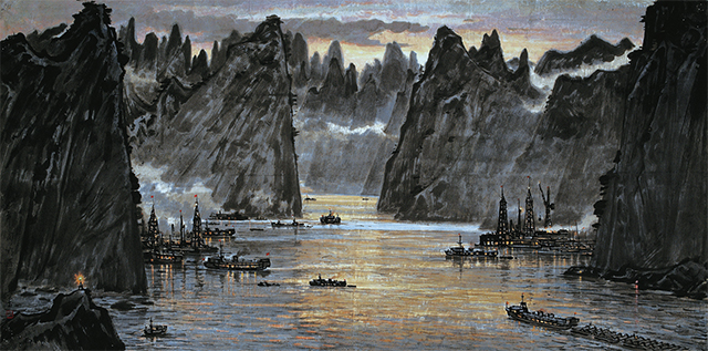 夜色如墨,他用留白與虛影映襯出光的力量,用水墨與色彩將夜幕漸漸“熄燈”。那一瞬間如同意象的通感,連結(jié)了傳統(tǒng)中國(guó)水墨與西方繪畫(huà)光影的距離,也留下了跨越中西、跨越時(shí)代的永恒藝境。