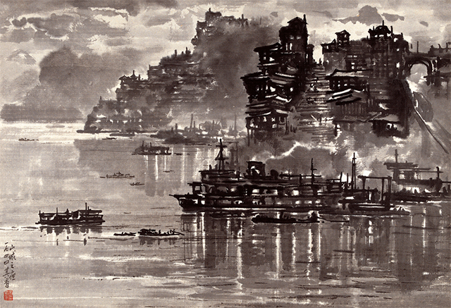 對(duì)于明滅夜色的敏感與鐘愛(ài),和對(duì)于色彩明度的敏感,使宗其香的藝術(shù)在最初走進(jìn)了夜幕的深邃與瑰麗。1939年,22歲的宗其香流亡到重慶求學(xué),考入中央大學(xué)藝術(shù)系。情感的挫折與孤獨(dú)窮困,使他常常于暮色之中徘徊在嘉陵江畔。面對(duì)迷茫幽深的山城與嗚咽流淌的江水,他觸景生情創(chuàng)作了嘉陵江夜景水彩畫(huà)。在將夜景水彩畫(huà)隨信寄給徐悲鴻后,他得到了徐先生的賞識(shí)和建議:“古人畫(huà)夜景只是象征性的,其實(shí)并無(wú)光的感受,如《春夜宴桃李園圖》等。你是否試以中國(guó)畫(huà)筆墨融化寫(xiě)生,把燈光的美也畫(huà)出來(lái)?”由此,在夜景中探尋墨色的豐富變化,捕捉與表現(xiàn)黑暗中光亮的不同層次與色階,使宗其香找到了藝術(shù)獨(dú)創(chuàng)的突破口。
