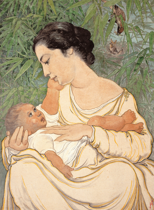 與他的導(dǎo)師徐悲鴻一樣,宗其香的中西融合之路在“傳統(tǒng)”與“出新”兩方面都有相對(duì)清晰的淵源,早年除求教徐悲鴻外,亦得親灸于黃君璧、張書(shū)旂等傳統(tǒng)名家,1935年18歲那年的摹古山水,展現(xiàn)了他早年的筆墨功底。同時(shí),他具有堅(jiān)實(shí)的基礎(chǔ)造型能力,將其對(duì)中國(guó)傳統(tǒng)繪畫(huà)筆墨的認(rèn)識(shí)和掌握,與對(duì)西畫(huà)色彩表現(xiàn)能力的探索融合起來(lái)。在藝術(shù)創(chuàng)作上,他追求真與美的統(tǒng)一,也重視主觀情緒的感奮抒發(fā)。他曾對(duì)學(xué)生說(shuō),“畫(huà)畫(huà)要事先想好主題,表現(xiàn)什么、什么最打動(dòng)你,首先打動(dòng)自己,你畫(huà)出來(lái)才能打動(dòng)別人,畫(huà)畫(huà)的人要具有演員、導(dǎo)演、舞臺(tái)裝置的才能。”