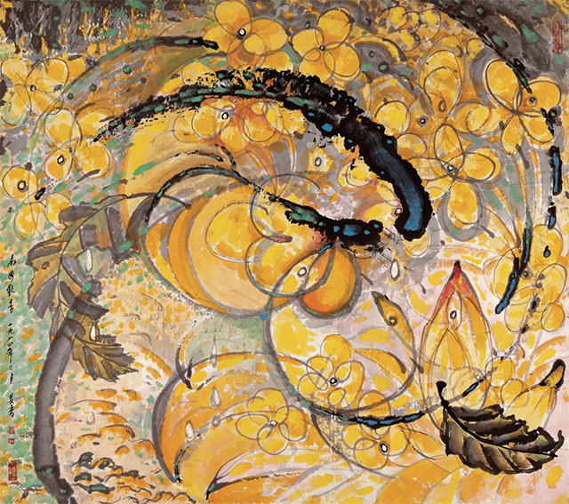桂林期間,宗其香還創(chuàng)作了諸多不同風(fēng)格的水彩寫(xiě)生,雖景致與風(fēng)貌不同,皆與中國(guó)畫(huà)元素、技法緊密結(jié)合,將中西畫(huà)法結(jié)合實(shí)驗(yàn),也充分體現(xiàn)了徐悲鴻提出的“古法之佳者守之,垂絕者繼之,不佳者改之,未足者增之,西方畫(huà)之可采入者融之”的“引西潤(rùn)中”思想。這一創(chuàng)作實(shí)驗(yàn)理路,一直影響到了宗其香在上世紀(jì)80年代以后現(xiàn)代風(fēng)格的延伸探索,如《榕之露》《南國(guó)秋香》等一批抽象風(fēng)格作品的嘗試,也包括他在學(xué)院教學(xué)中的人物肖像、靜物寫(xiě)生、燈光人體系列等創(chuàng)新實(shí)踐。