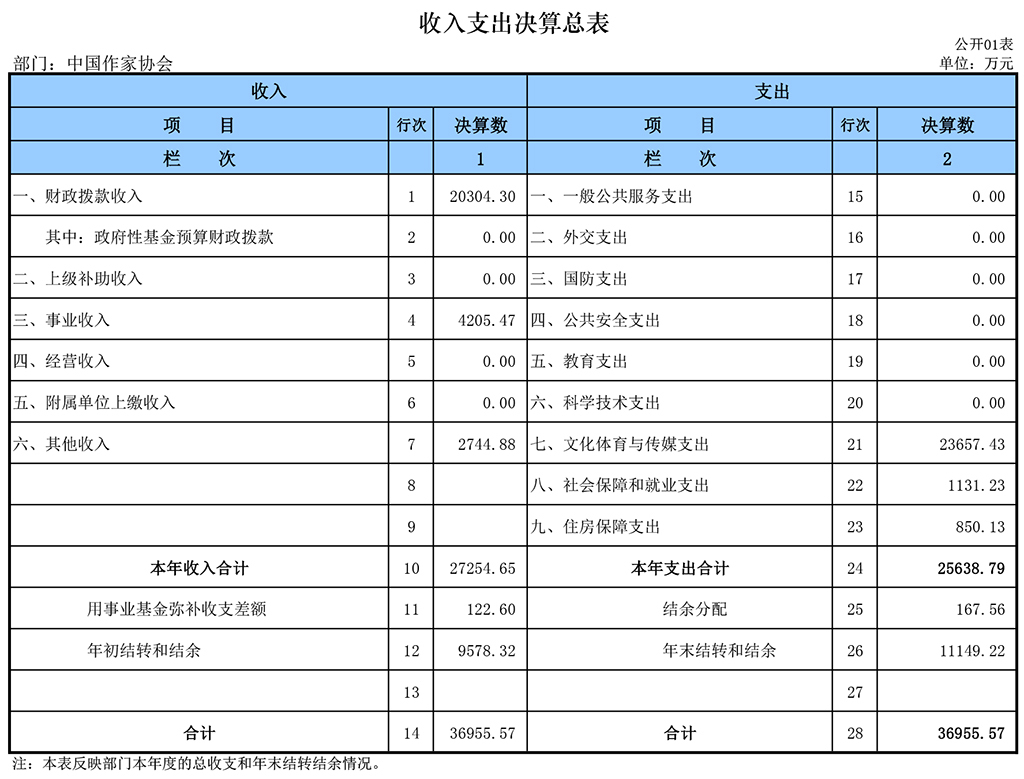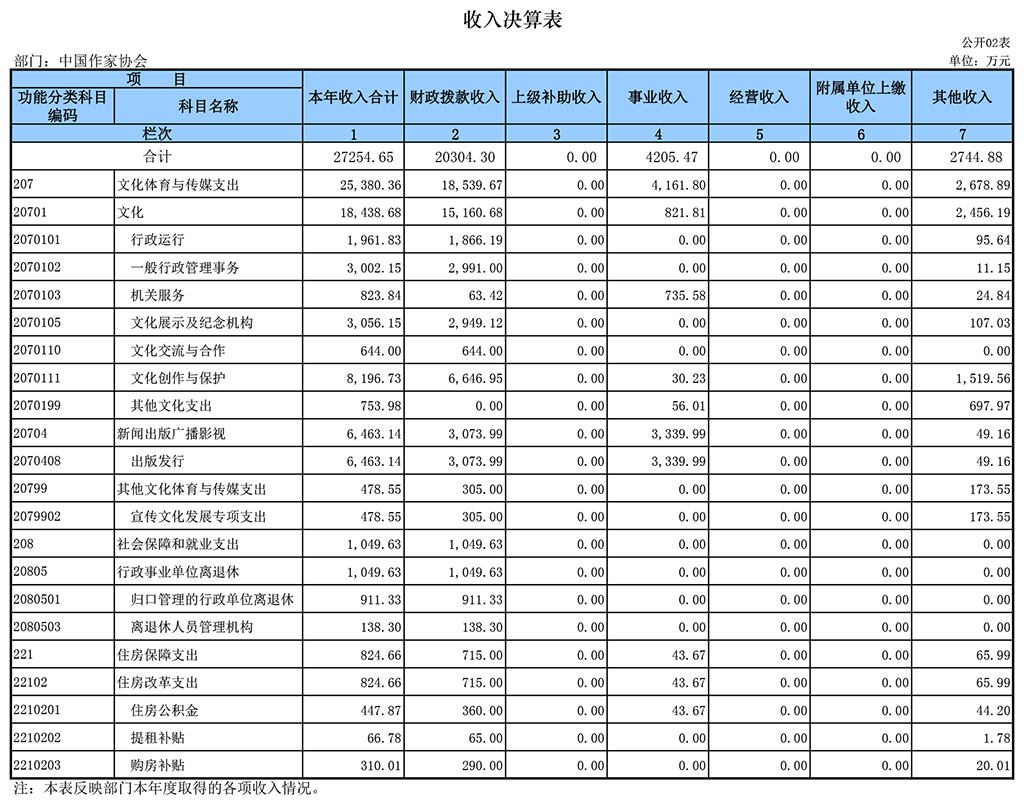 2016年中國作協部門決算報表如下: