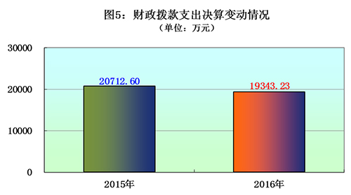 中國作協2016 年度財政撥款支出19343.23萬元, 占本年支出合計的75.45%。與 2015 年相比,財政撥款支出減少1369.37萬元,下降6.61%。