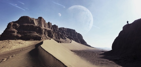 《拓星者》故事發生在外太空的荒漠星球,為給觀眾帶來最真實的感官體驗, 影片在新疆雅丹地貌戈壁真實取景,制作團隊對科幻感的道具、場景都精益求精本持“匠心”。從曝光的海報和場景照中能看到,同樣是沙漠拍攝,《拓星者》與好萊塢大片《火星救援》的沙漠場景頗有不同,比起《火星救援》一片漫天黃沙的場景,《拓星者》這次選擇的外景地更具硬朗的質感。廢土中的白骨猙獰,散落的飛船鋼鐵廢墟,天空中的神秘星球與軌道影像若隱若現。先導海報上,被機甲裝置包裹著的已經化為白骨的手指深深插入沙漠中,狠狠攥住取水裝置,似乎預示著行兇者趕盡殺絕的殘忍之勢。當“拓星者”們的飛船遭受浩劫,面臨外星缺水被死亡籠罩的危機,外太空荒漠中的一場極致生死體驗即將展開。