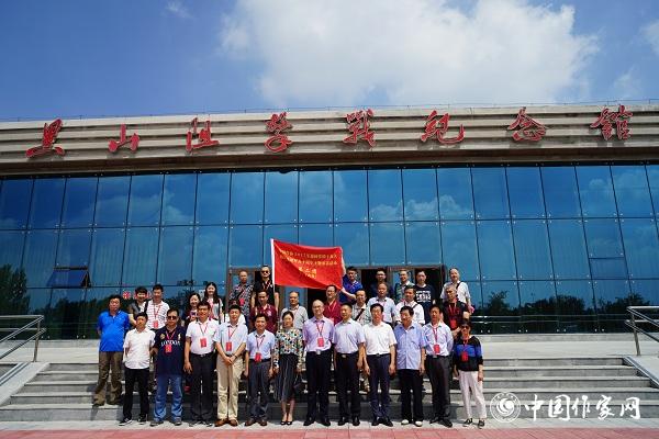 采訪團在黑山阻擊戰紀念館前合影 攝影:樊金鳳