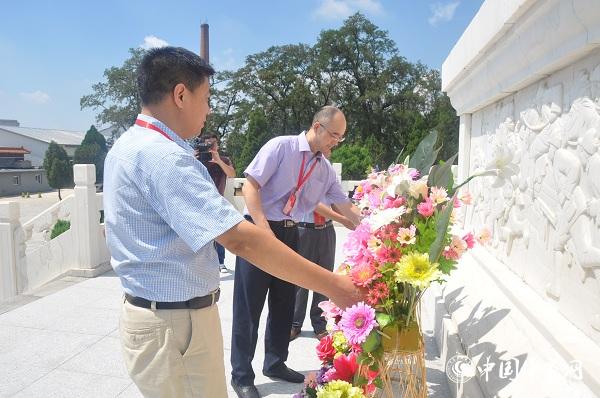 采訪團(tuán)來到黑山阻擊戰(zhàn)烈士陵園,并向烈士默哀 攝影:趙井然