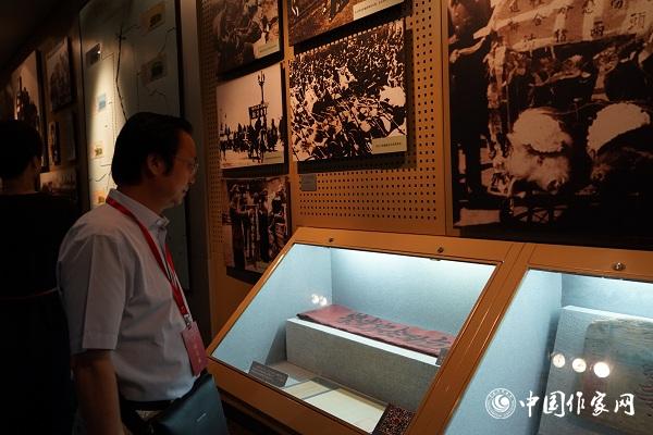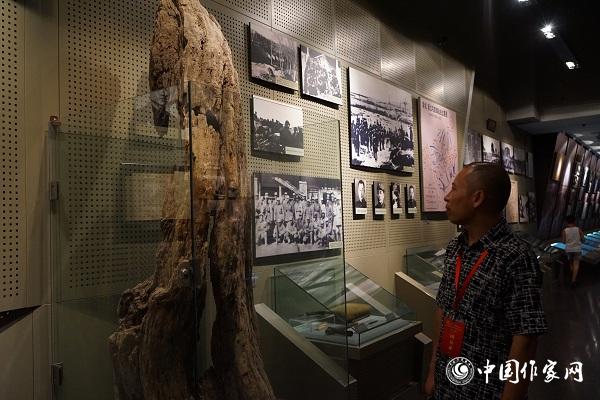 9日上午,采訪團(tuán)來到遼沈戰(zhàn)役紀(jì)念館,紀(jì)念館由朱德元帥親筆題寫?zhàn)^名。從戰(zhàn)史館、支前館、英烈館到全景畫館,一張張黑白照片、一件件歷史文物將每個人拉回到那段艱難的革命歷史歲月。紀(jì)念館中,一個被保存著的枯樹引起了大家的注意。這棵樹曾為戰(zhàn)士擋住許多槍炮,被命名為“英雄樹”。英雄樹的表面仍殘留著許多槍眼和彈孔,團(tuán)員們站在英雄樹前,心情久久不能平靜。團(tuán)員陳亮感慨地說:“這棵樹曾被槍炮打過,雖有些干枯,卻始終沒有腐朽,它讓我們敬畏。”后來,陳亮還為英雄樹作了一首詩。他說,看到實(shí)物實(shí)景,內(nèi)心常常受到觸動,創(chuàng)作的靈感也會瞬間迸發(fā)。寫作就是為了不遺忘。團(tuán)員裔兆宏有同樣的感受,他說,參觀革命根據(jù)地現(xiàn)場遺址,對于摒棄歷史虛無主義,真實(shí)再現(xiàn)革命歷史,創(chuàng)作出有歷史感、有情懷、有溫度的作品具有重要的意義。