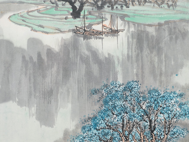 新中國成立以后,山水畫家們在新的歷史背景下,開始了思想更新與畫法創新,使古法山水在社會現實和革命需要中呈現出前所未有的嶄新面貌。在社會主義文藝方針的指導下,畫家們開始自覺表現社會主義帶來的新氣象,以傅抱石、錢松巖為首的新金陵畫派更以地域集體的力量推進社會主義文藝的新發展,他們從寫生出發,謳歌時代,抒發感懷,在表現內容和手法上都達到了歷史的新高度。伍霖生作為新金陵畫派的重要成員,自然地參與到了這個藝術史變革的洪流中去。