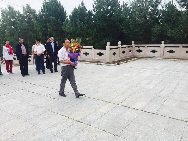 采訪團團長白庚勝代表采訪團作家向孫龍珍烈士獻花