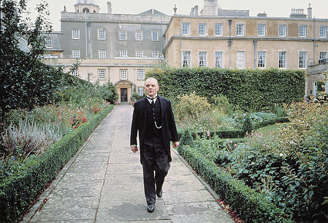 在《告別有情天》前,導演伊沃里已有《窗外有藍天》和《此情可問天》等名作,圍繞一座大宅和幾個老派的英國人,炮制矜持克制的英倫古典味兒,簡直是這位導演手到擒來的看家本事。達林頓府作為談笑皆權貴、往來無庶人的“大轉輪之中心”,在電影中被拍出了鮮花著錦、烈火烹油的排場,尤其是宴飲場面、精致的布景和服裝道具,都看得到拍攝經費在燃燒。