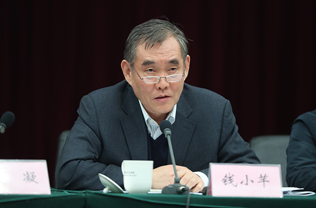 錢小芊強調,黨的十九大是不忘初心、牢記使命、高舉旗幟、團結奮進的大會,黨的十九大精神主題鮮明、思想深刻、內涵豐富、革故鼎新,是我們邁向新時代、開啟新征程、續寫新篇章的政治宣言和行動綱領。學習好、宣傳好、貫徹好黨的十九大精神是文學界當前的首要政治任務,也是一項長期的重要政治任務。我們要在文學界興起學習宣傳貫徹黨的十九大精神的熱潮,切實把思想和行動統一到黨的十九大精神上來。我們要在學懂、弄通、做實上下功夫,用十九大精神指導文學創作和作協工作,堅持以人民為中心的創作導向,深入生活,扎根人民,努力創作更多謳歌黨、謳歌祖國、謳歌人民、謳歌英雄的優秀作品。