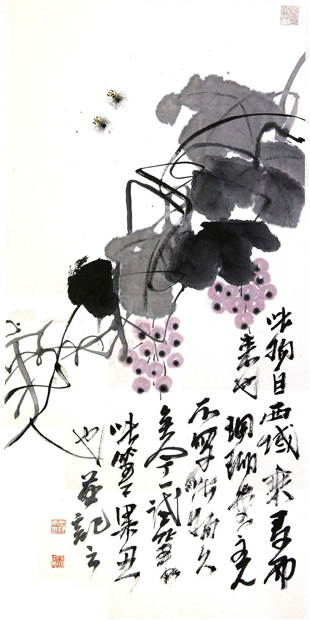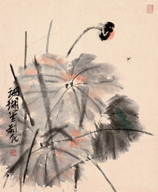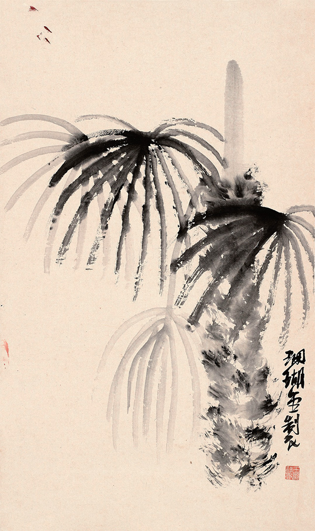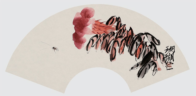 前不久,看一本《古今指畫集》,便忽然想起用手指試它一試,且給毛筆放幾天小假,小時候師傅經(jīng)常畫指畫,畫之前,必先換黑衣黑褲,這便是講究,然后才慢慢畫起,或是用小指指甲輕輕著一點墨在紙上一點一點輕輕拉,或是用食指和中指并在一起在紙上用力搓擦,或是單用中指蘸一點墨在紙上輕輕點,食指的指甲最長,著紙有力像是公孫大娘劍器行,在紙上一劈一劈。若四指并攏了一齊上陣,大塊的石頭便在紙上即刻崢嶸起來。想想師傅當年畫指畫那雙手真是黑煞難看,指甲縫幾天都洗不干凈,都不忍看他伸手取饅頭。再看看畫冊中潘大師指畫的松石,看看歷代畫家指畫的凌厲用筆,便忍不住研了墨,手巾水盆都準備好,老婆廚房用的圍裙此刻忽然升級,居然直接與文化接軌。鋪好紙,是從右手先黑起,繼之左手,為了畫這指畫還特意留了指甲,但也不是專門為了畫這幾張破宣紙,平時沒事?lián)崤徘伲沂种讣鬃匀辉冢倭魟t是小指,小指指甲畫蟲須,真是要緊的很,其他指甲還很難派用場,而小指指甲留短了還不行,此指便一如筆中的“衣紋”“勾線”。而大拇指卻是中號狼毫。畫指畫,特有一法是以線纏指,粗線細線各有講究,纏一指纏兩指須事先想好,把手指直勒出一道一道楞,還要學會用手抓墨,水盂里一下,硯池里一下,要快而利落,用手指一抓一抓,即刻灑落紙上,淡墨一下濃墨一下,紙上便淋漓起來。潘天壽最喜畫指畫,想必其指甲亦是特別的長,看他指畫之松針,厲厲一如刀劍,今年6月荷花開,專門跑去杭州看了一回荷,心里便想著潘大師的指墨荷花。潘大師的指墨好,好在尺幅大而畫面凈爽,沒一滴墨跡灑落,無論山石蘭草松針鷲鳥,線條遒勁利落得讓人想不到,想必潘大師是一邊畫一邊用什么兜著那只手,不然怎么四尺整張的大畫會那么干凈?畫指墨真是很難做到這一點。所以其《淡彩指墨畫鷲圖》令人心服。再看南宋梁楷,總覺他的畫兒也一律都是手活兒,有指墨的味道。用手指在紙上作畫當然叫做“指畫”。指畫始自唐代張璪,想必此人的手指整日也都是墨跡淋漓,指甲縫里更不必說,且穿不得素衣白袍。畫指畫,雖指縫墨跡一連幾天都洗不干凈,但我還是喜歡那種感覺——就像是身上忽然長出10支筆,居然是軟中硬都有,且分大中小號。以指代筆,有特殊美感,但畫指畫,一張畫實實在在很難只靠手指來完成,即如潘大師,也不免要靠毛筆來收拾一下,或是以線纏指增強其表現(xiàn)力。畫指畫其實味在趣味,不在尺幅大小,最上乘的指畫當純以手指在紙上來去。而以指濡墨,表現(xiàn)力畢竟不如毛筆。時下無論幾流畫家作畫都喜歡畫大畫,動則八尺或丈八,且以能入時人眼為最高目的。有一句話是:“好書畫不入時人眼,入時人眼必無好書畫。”指畫一如唐詩之外的詞,古人把詞叫做“詩之余”,詩言志而詞言情,而指畫可以說是“畫之余”,重在一個“趣”字。趣乃國畫之真魄所在,不如此不可觀。