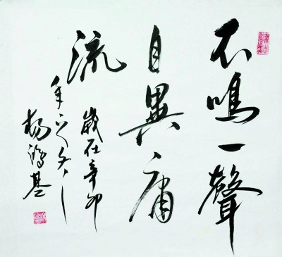 原來,兩個月來,楊洪基一點也沒懈怠,一有空就鉆進書房,用不同的字體、不同的版式寫了100多幅,但他仍覺得不滿意。每天,他將比較滿意的字放在桌面上,要求第二天必須超過這個水平。原本他準備繼續(xù)寫,直到最滿意再給閻俊茹。沒想到小閻上門來取了,楊洪基這才將書桌上的橫版和豎版兩幅字交到閻俊茹手里,閻俊茹感動得說不出話來。