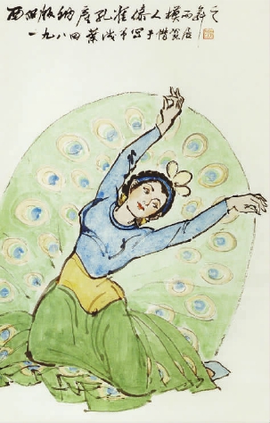 20世紀50年代,葉淺予的舞蹈人物畫開始趨于成熟。 《于闐裝》 《共飲一江水》 《涼山舞步》輕松而別致,濃淡、干濕、冷暖搭配均合情合理,無不透出奔放俊逸、瀟灑浪漫之氣。這一時期所畫的印度舞已是另一種面目,如《婆羅多舞》 ,灑脫之極; 《獻花舞》 ,嫵媚之極。這些作品均取材于葉淺予平時的現場速寫,描繪的是少數民族載歌載舞的畫面,從形象和服飾上看是寫實的,不過葉淺予這時所追求的繪畫目標是“不畫幕中之舞,要畫胸中之舞” 。