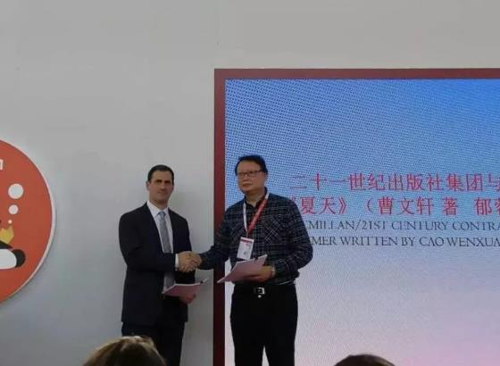 在本屆書展上,明天出版社還簽訂了張煒先生的作品《尋找魚王》的葡萄牙語、高棉語,曹文軒先生的“曹文軒說故事”系列、秦文君女士的作品《寶塔》的尼泊爾語,劉海棲先生的作品《畫家馬西西和臭屁大王》阿拉伯語的版權等十多項輸出合約。