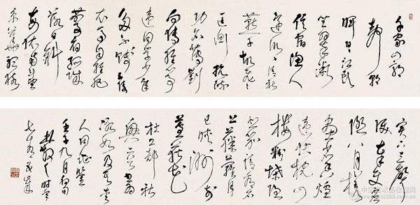 也許傅雷沒有想到,林散之欣然應允。他遵照傅雷的要求,畫了八幅不同風格的山水畫。這八幅山水畫,林散之用心畫著,每一幅有每一幅的構思,每一筆有每一筆的講究,為此,林散之曾說:“予為怒庵畫冊頁八開,由初春而深冬,水墨、著色者相間,濃淡有序,動筆之前便有大體上構思,下筆時細節有變動,但大綱未變。總體構思疏忽,每幅可看,放在一起便不協調。八開中有‘重頭戲’,《嘉陵江》取斜勢,小中見大;一頁得郭熙遺意,云頭皴似牛毛,筆筆相顧;一頁近子久,多次積墨,較為沉厚。……”
