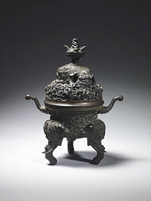 與虎鎣一同拍賣的還有兩件來自中國的青銅器。分別是青銅“大象”香爐和商周時期樽青銅酒器皿。