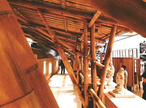 學院在教學創作中號召師生扎根生活,倡導“勞作上手、讀書養心,像哲人般思考、如工匠般勞作”的理想,就是希望能繼民學精神,再興鄉土生活,借藝術讓人民的生活更美好。“我織我在”“本土營造”“天工開物”所呈現的便是貫徹這一理念的教學最新現場。在“我織我在”的空間中,數百條由師者編織的千變萬化的繩結里,貫穿著數組學生的編織作品,讓觀者體驗到“身心發動、情義直觀”的東方藝術真諦,也感悟到上手的技藝與造物思想的關聯;“天工開物”則向我們展現了陶瓷、漆器、玻璃、首飾等與棲居空間相融相依的手工藝品;“本土營造”聚焦于“復興融通自然、城市、建筑和造園的整體性”之大命題,這個極具泥土氣息的營造現場,背后凝聚了大量的鄉土調查與實踐摸索。