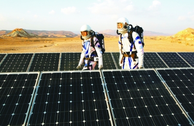 在以色列內蓋夫沙漠中的火星沙漠研究站,志愿者“宇航員”執行“太空任務”。火星沙漠研究站是在以色列航天局支持下建立起來的一個火星模擬基地,位于以色列南部一片沙漠的腹地中。圖為新華社發