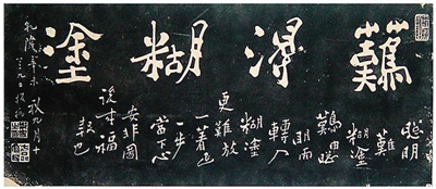 在這種思想下,鄭板橋奮發(fā)攻書,創(chuàng)出“怒不同人”的“六分半書”。“分書”即隸書,又稱為“八分書”。鄭板橋的分書,是以隸書筆法形體摻入行楷,使書體介于隸楷之間,且隸多于楷,故稱“六分半書”,意即減八分之意。加上他以畫蘭竹之筆法入書,形成了鄭板橋別具一格的書體,被后人稱作“鄭板橋體”。