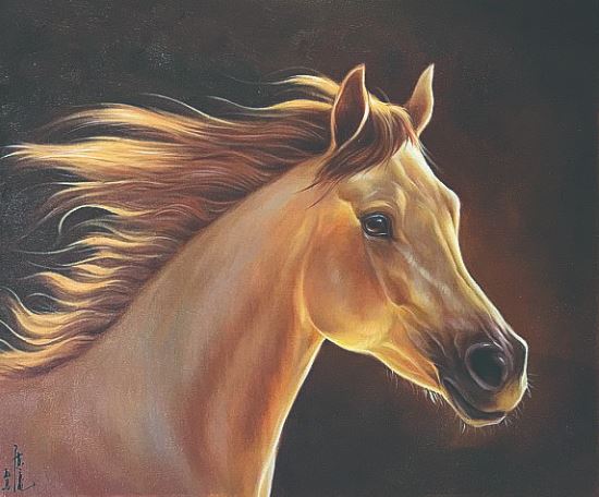 如今,一提起馬,我就仿佛又看到廣亮站在畫架前,握筆凝神,遙望遠方,虛空中有那熟悉的不羈身影在暗自涌動,似乎有淡淡的硝煙從畫上飄過,有隱隱的風雷在畫布深處轟響……我知道,廣亮對這時代精靈的探究之旅在繼續向前延伸……