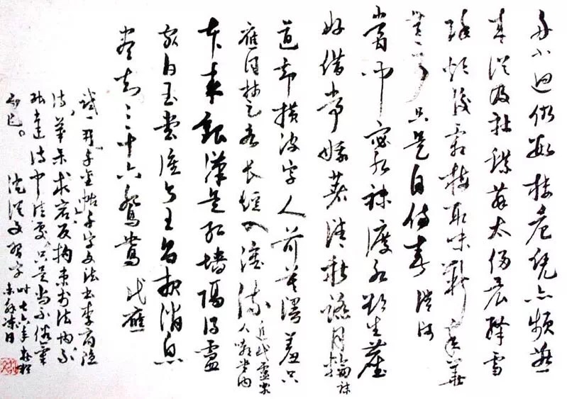 我是從老詩(shī)人曹辛之那里了解沈從文書(shū)法的。曹辛之是沈從文的好友,七十年代初,他們兩家住得不遠(yuǎn),常常來(lái)往。沈從文新寫(xiě)了字總喜歡會(huì)拿到曹辛之家里給他看,也常把自己寫(xiě)得滿(mǎn)意的字送給曹辛之。沈從文去世后,曹辛之發(fā)現(xiàn)自己竟有了數(shù)十張沈從文的字。