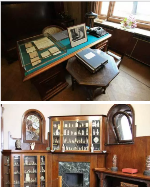 第二天我們繼續參觀位于莫斯科市中心卡恰洛夫街6號的高爾基故居,門前釘著一塊牌子:“高爾基于 1931年至1936年曾在這里住過。”這是一棟灰色的兩層樓房,是俄國富翁、重要的俄國現代派藝術的資助者里亞布申斯基的私宅。房子保持著高爾基原來的生活風貌,可以想象他在這里生活、寫作、接見朋友們的情景。高爾基的書房里保存著1.2萬冊書,大約3000本書上留有高爾基所做的記號和眉批,記錄著一個作家的勤勉和思考。高爾基對中國有著特殊的感情,工作室右側的玻璃柜里陳列著高爾基搜集的部分東方藝術品,其中有許多中國牙雕和其他工藝品。穿行在其中,不由自主地想起魯迅,很多人稱呼他為 “中國的高爾基”,兩個人有著共同的日常習慣,對于各地文學青年的來信和請教,一般都要親自回信。高爾基總共寫了近2萬封信,其中8500封保存在高爾基檔案館里。高爾基給青年作者退稿或寄書時,往往也親自動手包扎好,寫好地址,這一點魯迅也是如此。在工作室的櫥柜里,陳列著高爾基當年用過的剪刀、繩子、膠水等,沉默的時光,遠去的故事,但他們的確留下了一些什么,等著后來者再次去開啟。