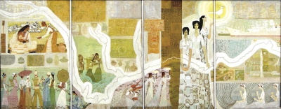 任麗君《長江——中華的榮耀與希望》工作稿,1982年。這是她為當時十六鋪客運站新候船大廳三層樓高的壁畫而起稿設計的