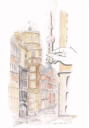 但更多時候爺叔并不解釋他的畫,就像這幅“剪貼外灘”,他的“不響”,背后是關(guān)于城市的隱喻。