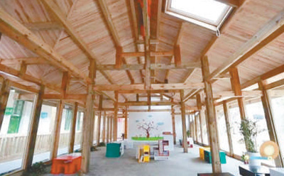 純化鄉村景觀風貌的設計,不僅僅體現在民居和一些小體量公共建筑的改造,對于鄉村傳統建筑形態的尊重,也體現在如小學這樣具有標志性意義的公共建筑的創新性形式設計,使得整體鄉村景觀風貌呈現出統一中的變化、純化中的創新。