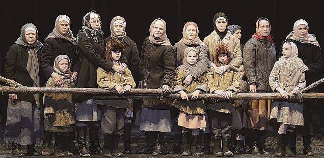 林蔭宇:改編作品重要的是看編導者用什么樣的敘述策略和舞臺語匯來完成文本的轉換。我從列夫·朵金執導的《兄弟姐妹》中就看到了導演駕馭原著的能力和水準。《兄弟姐妹》改編自前蘇聯作家阿勃拉莫夫的長篇小說《普利亞斯林一家》三部曲,自1985年首演以來,常演不衰30余年。舞臺呈現上,列夫·朵金一方面通過精彩的舞臺調度和場面展現人們的生存狀態和思想情感,另一方面以陌生化手法,對人們生活中司空見慣的事物進行了間離,從而產生了震撼與感動。比如,劇中,男主人公米哈伊爾從前線回來了,母親和弟弟妹妹們圍在身邊,他分發禮物:鞋、布、子彈殼,最后他托著一個布包說,這是最意外的禮物。家人們期待著,觀眾期待著……他一層一層地打開覆蓋的布,露出了一整塊黑面包!舞臺上所有的人屏氣凝神地注視著這塊面包,那么神圣那么專注那么虔敬地凝望著它,一個長長的靜場。這時,五六歲的小妹妹輕聲地問:“媽媽,這是什么?”母親表現出一種難以言說的難過:一個以面包與馬鈴薯為主食的民族,竟然不知道面包的模樣。小女兒呀,你長這么大,還沒見過它,不認識它!導演用這樣一個細微的場面撥動了觀眾的心弦,仿佛一絲苦汁浸透心脾。