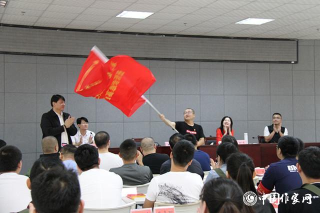 黃鶴向網(wǎng)絡(luò)作家蘇小蘇授開(kāi)班旗