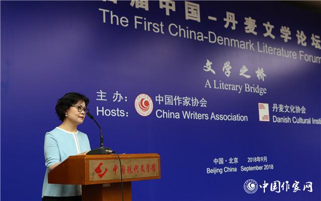 9月26日,首屆中國—丹麥文學論壇在中國現代文學館開幕。中國作家協會主席鐵凝、丹麥文化協會高級聯絡官馬勒妮·赫爾姆出席開幕式并致辭。開幕式由中國作協外聯部主任張濤主持。