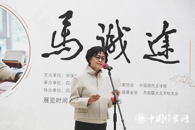 10月10日,由中國作家協(xié)會主辦的“馬識途書法展暨《馬識途文集》發(fā)布會”在中國現(xiàn)代文學(xué)館舉行。全國人大常委會原副委員長王漢斌、彭珮云出席活動。中國作協(xié)主席鐵凝出席活動并致辭。中國作協(xié)黨組書記、副主席錢小芊,中國作協(xié)名譽副主席王蒙、翟泰豐、金炳華、李冰,中國作協(xié)副主席陳建功、吉狄馬加,國家林業(yè)局原副局長趙學(xué)敏,中國文聯(lián)書記處書記陳建文,中國作協(xié)名譽副主席張炯等來自社會各界的百余位嘉賓出席活動。活動由中國作協(xié)副主席、中國現(xiàn)代文學(xué)館館長李敬澤主持。