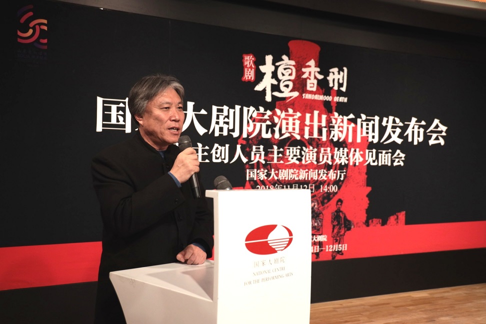 11月12日下午,“歌劇《檀香刑》國(guó)家大劇院演出新聞發(fā)布會(huì)暨主創(chuàng)人員主要演員媒體見(jiàn)面會(huì)”在國(guó)家大劇院新聞發(fā)布廳舉行。山東藝術(shù)學(xué)院黨委書記馬東驊,編劇莫言、導(dǎo)演陳蔚、指揮張國(guó)勇、作曲李云濤等主創(chuàng)人員,主演宋元明、韓蓬、王立夫等出席了發(fā)布會(huì)。