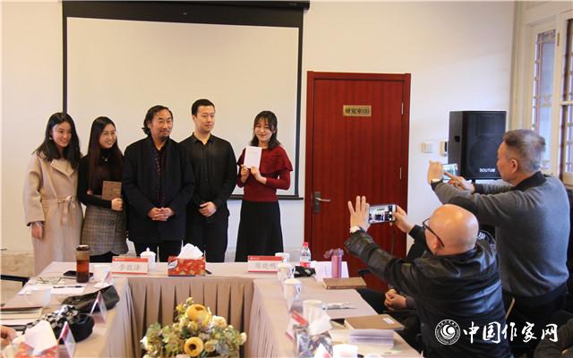 拍與被拍:詩人華清和朗誦自己詩歌的學生合影