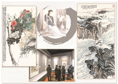 ①吳昌碩《富貴神仙》。(上海市美術家協會供圖)②展覽現場。本報記者葉辰亮攝③陸儼少《杜陵詩意圖》。(上海市美術家協會供圖)④林風眠《賞花圖》。本報記者葉辰亮攝制圖:馮曉瑜