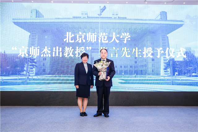 陳麗為莫言頒發(fā)聘書