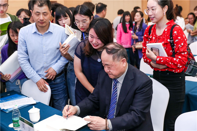 莫言為學(xué)生們簽名