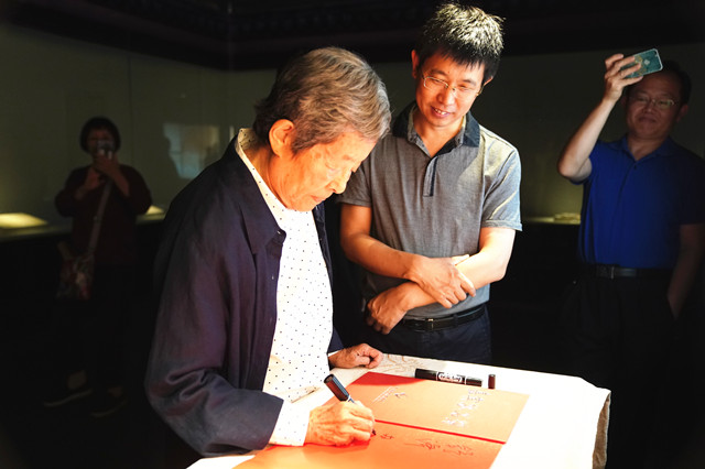 為紀念著名作家老舍誕辰120周年,6月1日,老舍代表作《四世同堂》手稿特展在中國現(xiàn)代文學(xué)館開展。中國現(xiàn)代文學(xué)館副館長梁飛,老舍先生長女舒濟、老舍先生長子舒乙的夫人于濱,以及各界觀眾百余人參觀首展。